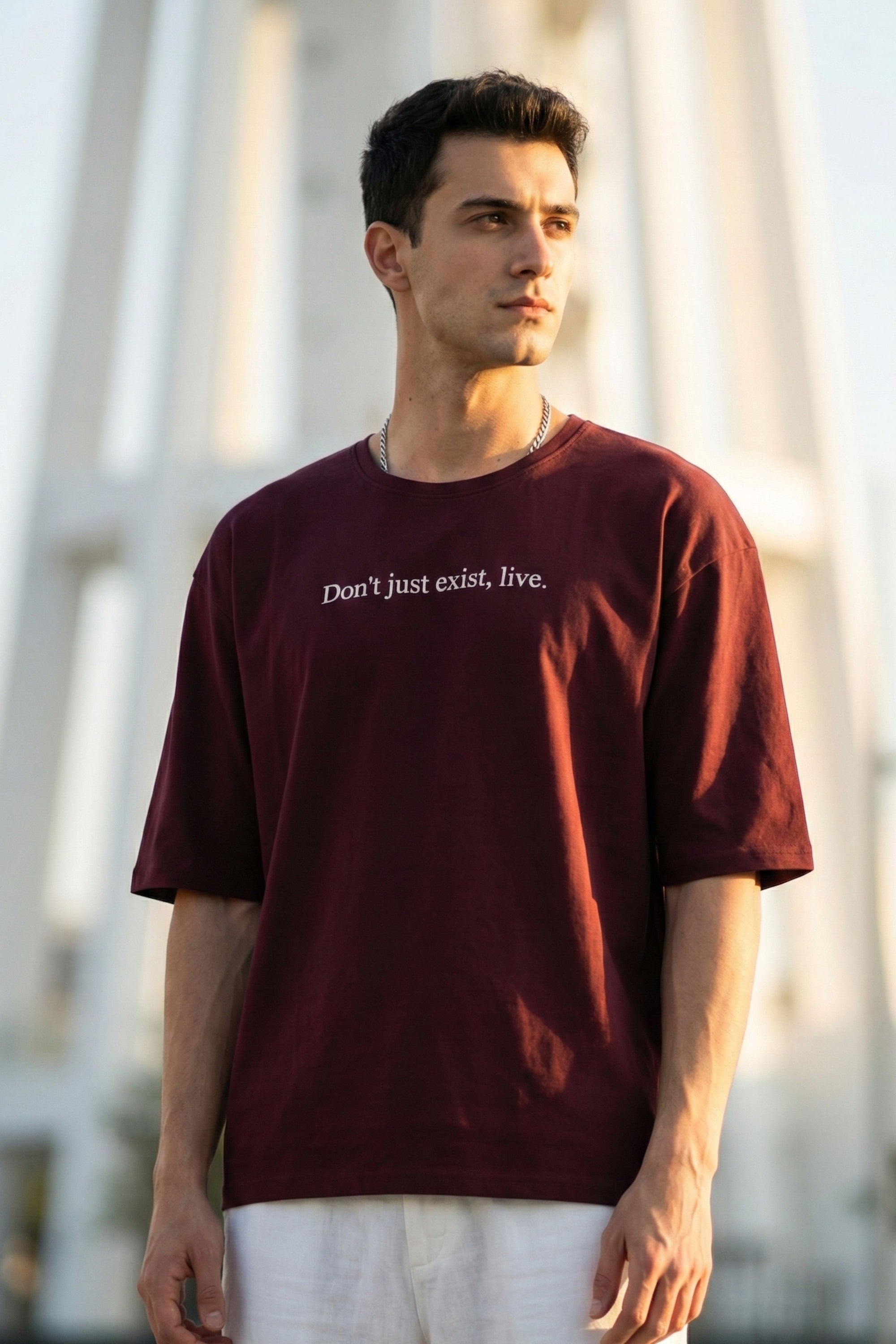 Drop Shoulder Half Sleeve Wine Red T Shirt