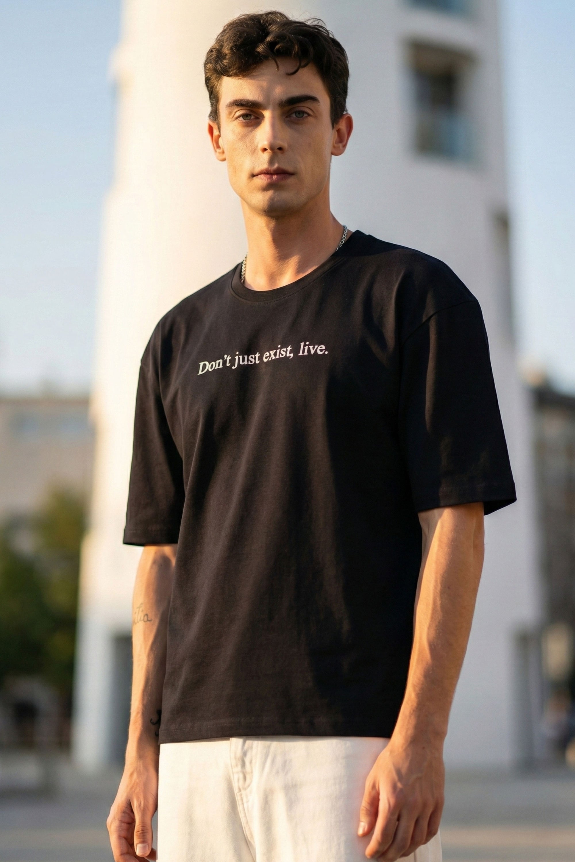 Drop Shoulder Half Sleeve White T Shirt